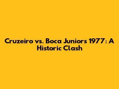 Cruzeiro Vs. Boca Juniors 1977: A Historic Clash
