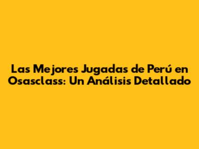 Las Mejores Jugadas De Perú En Osasclass: Un Análisis Detallado
