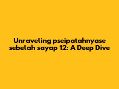 Unraveling 'pseipatahnyase Sebelah Sayap 12': A Deep Dive